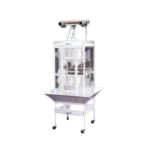 כלוב מאובזר ומרווח מגיע עם כלי אוכל מנירוסטה וגלגלים.